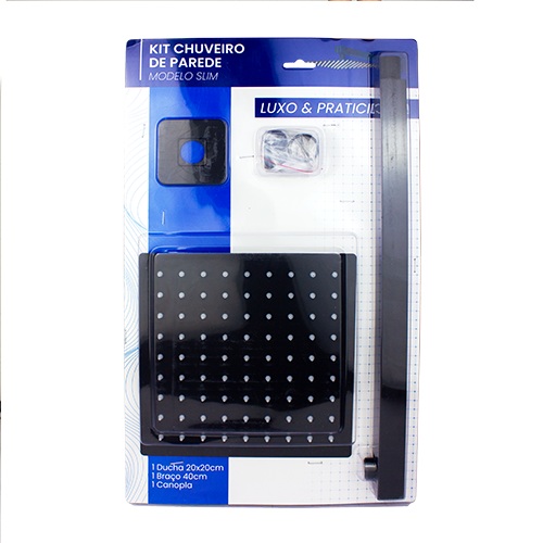 DUCHA COMPLETA SLIM C/ BRACO 20CM X 20CM PRETA – ULTRA METAIS