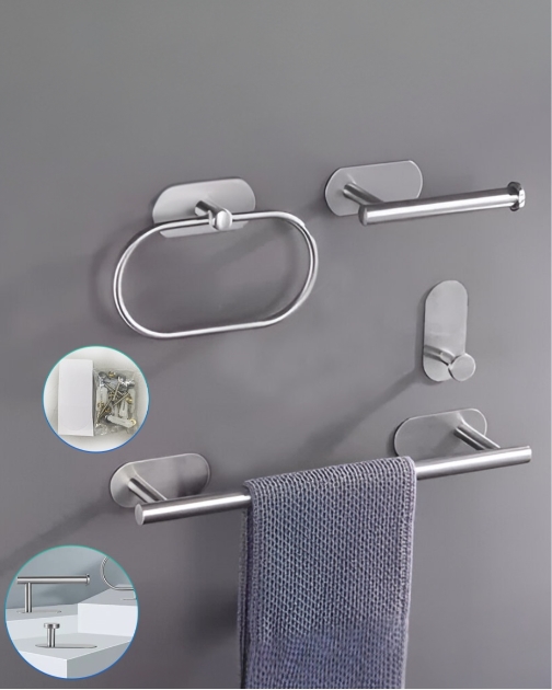 KIT SANITARIO PORTA TOALHA OD-602 C/ 4 PCS – ACO ESCOVADO